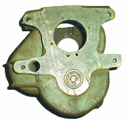 The SM420 also has significant large round bulge on the passenger side of the transmission. The protrusion was required to allow internal clearance for the reverse idler shaft. It is this hump that does not allow us to offer any adapters shorter than 4". Some conversions still may require a small amount of grinding for front driveshaft clearance. Later versions had two latitudinal ribs cast in the in the same area. Over the years we have seen a few very thin adapters hit the market. These ultra-thin adapters require excessive amount of grinding to the point that the walls of the case become thin enough to actually upset the overall integrality of the transmission.