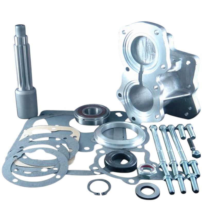 This transmission works great in Land Cruisers. The overall length is 10-1/2". It has the lowest 1st gear available of 7.05:1; 2nd 3.57:1; 3rd 1.7:1, and a 4th gear ratio of 1:1. The transmission was used in GM trucks from 1947 to 1968. This transmission has a 10 spline output shaft which we couple to using a new spud shaft. (Note: We have seen a few SM420 transmissions with a 32 spline output which we can also adapt to). The cast iron case of this transmission will sometimes require modifications due to interference with the front driveshaft or transfer case shifter linkage. A transfer case shifter linkage bracket is not included in any of these kits. As the years progress, it is getting harder to find this transmission and parts.