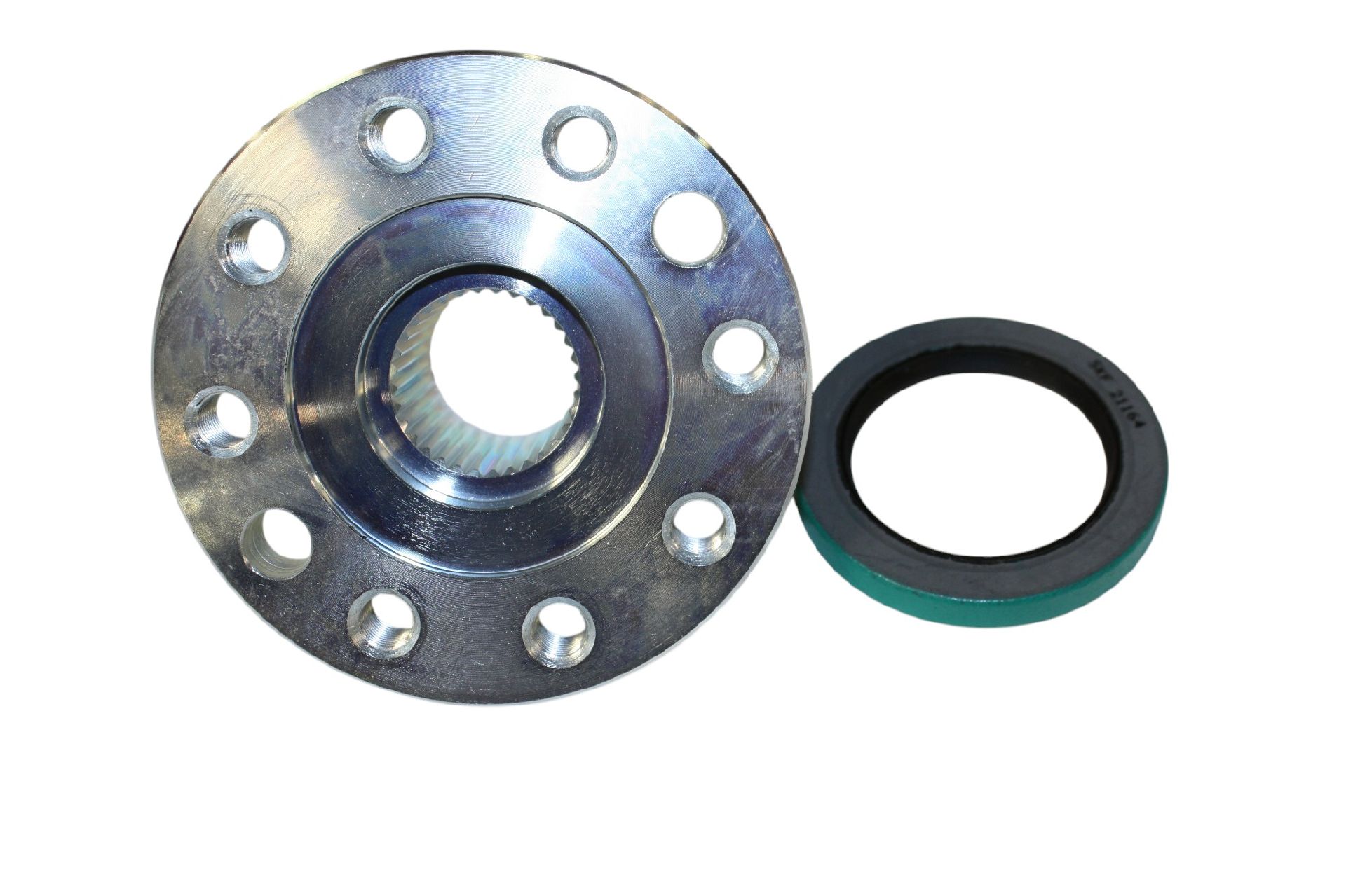 1410 flange is drilled & tapped for (4) 7/16-20 bolts on a 3.75" diameter and has a 2.75" female index.
