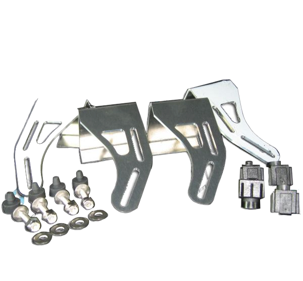 The mounting bracket kit includes: 4 rubber grommets, 4 carriage bolts, nuts, and washers, 4 Spal fan clips, 4 aluminum mounting brackets. This fan mounting kit is designed for our aluminum radiators only