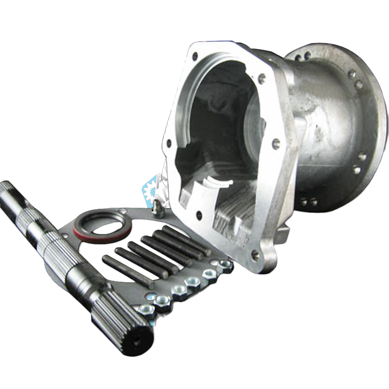 Our Ford C4 adapter to the to the Jeep Dana 300 transfer case is 6.250". Adapter material is a strong 356-T6 heat treated aluminum alloy and the adapter has a provision for a transmission mount. The adapter kit includes a adapter housing, new C4 output shaft, vent, bearing, seal, gasket, fastening hardware, and adapter instructions.