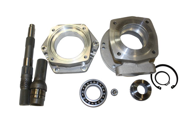 4L60E TO FORD NP T/C 31T, kit comes with a new 4L60E (700R) output shaft that needs to be installed into the transmission. The adapter housing has a bearing that supports the new spud shaft to couple the GM transmission to the Ford New Process transfer case.