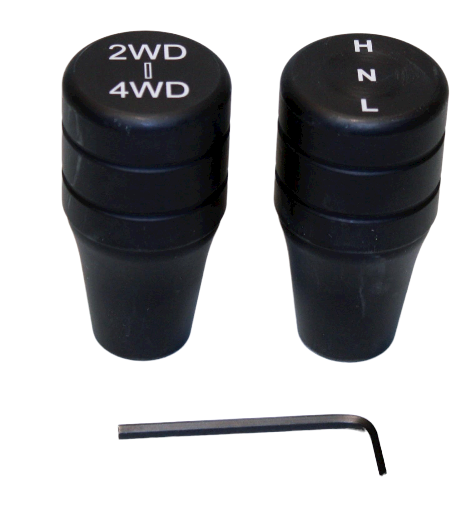 Give your Orion or stock L/C transfercase twin stick shifter a custom look with a set of billet aluminum shift knobs. This set of knobs stand 2.75" tall and black anodized