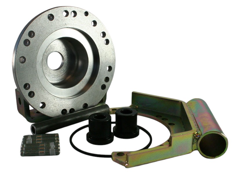 The Powerglide to Atlas transfer case adapter is 2.32” in length. The adapter material is 356 T6 heat treated aluminum alloy. The adapter kit includes an adapter housing, crossmember mount kit, fastening hardware, and adapter instructions.