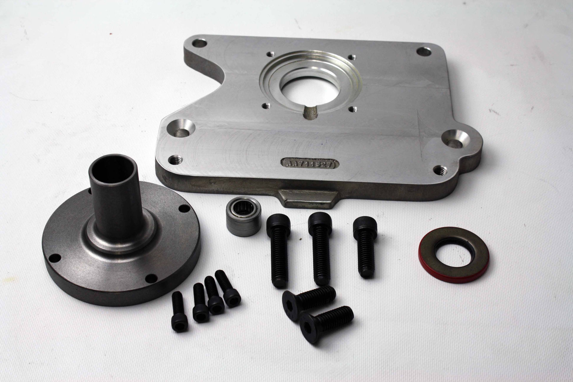 Note: With our adapter plates, we utilize a new front bearing retainer to obtain proper bell housing alignment. Chevy adapter plates we use a small index of 4.686", (the larger index retainer, PN716078, can be substituted for the 5.125" bell housing).