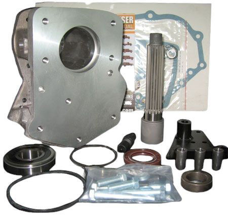 The adapter kit is designed for exclusive use with a 2wd 4L60E with a non-removable bellhousing. This transmission is identical to the 700R / 4L60 except that it is an electronically controlled transmission. GM manufactures this transmission in two versions. Both of these transmissions use a reluctor ring connected to the GM engine computer for proper shifting points. The first version of this transmission is a mirror image of the 700R, but it requires a reluctor ring. For these kits we adapt around the 2WD version of this transmission. The kits require the use of a stock 2WD output shaft with the stock reluctor ring. You will be required to shorten this shaft as indicated on the instruction sheet provided in your kit.