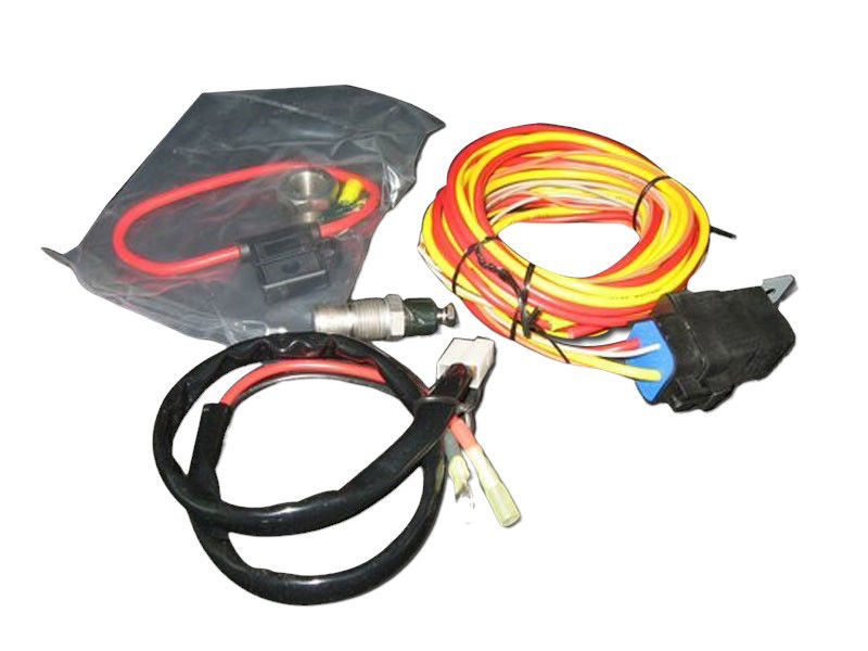 This fan harnesses come complete with the needed wiring, which is compatible with both positive and negative ground vehicles. The 3/8" pipe thread sending unit is designed to turn the fan on at 185 degrees and off at 170 degrees. The kit comes with a 40 amp relay, a fuse holder, and all other necessary hardware.