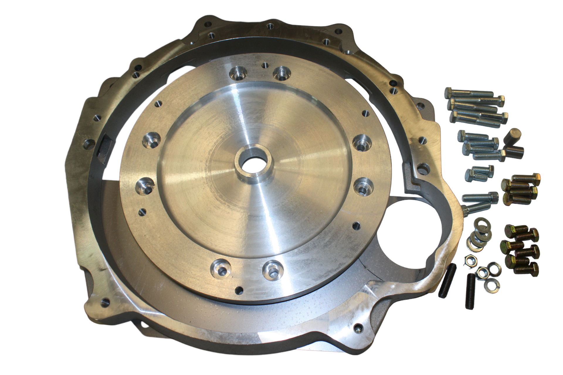 This adapter couples the Chevy V8 block to the Jeep Torqueflite transmission. The Jeep transmission must be originally coupled to a Jeep straight 6. This adapter kit uses a factory Chevy flexplate that bolts to the new aluminum torque converter ring that is part of the kit. The kit includes an Adapter plate, torque converter adapter ring, and hardware. Fits 1980-2002 Jeep Torqueflight 999/32RH