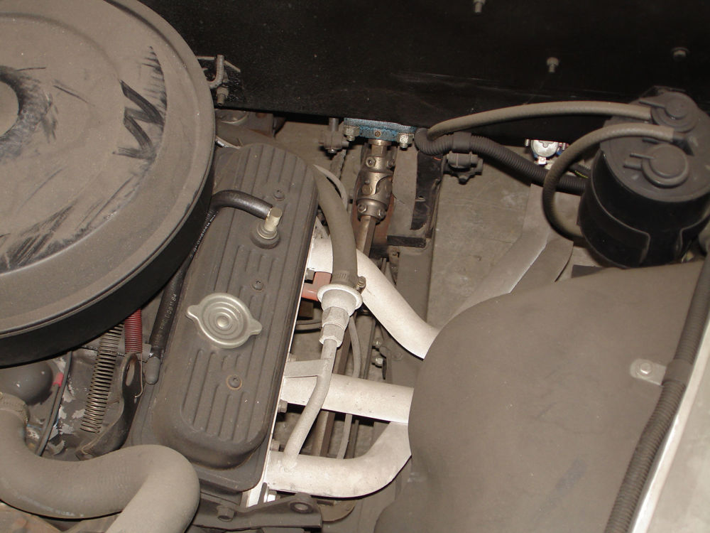 On engine conversions that are retaining the original steering box location, you will be locating the engine position as close as possible to the original steering box. When eliminating the original steering box, you will be able to offset the new engine 1" towards the driver’s side in order to allow for additional front driveshaft and starter motor clearance. In 1971, Jeep changed their steering design to almost the exact same configuration as the kit that we offer. The difference between the original Jeep installation and our installation is mainly in the design of the mounting bracket for the steering box. Jeep also used a rag joint coupler between the steering box and driveshaft.