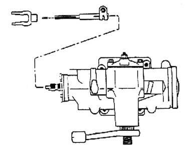 Power and Manual steering gear boxes are very similar. We have already illustrated what the two boxes should look like. Normal applications were on GM cars, but a few other vehicles are also using the same boxes. The steering box must be able to mount on the inside frame rail of your vehicle, with the input shaft extending horizontally toward the firewall. This input shaft is normally not long enough to extend fully into the engine compartment to couple with the steering driveshaft. This is why we offer steering spud shafts to extend these steering input shafts. On occasion, we carry power steering boxes which are listed at the end of the steering section.