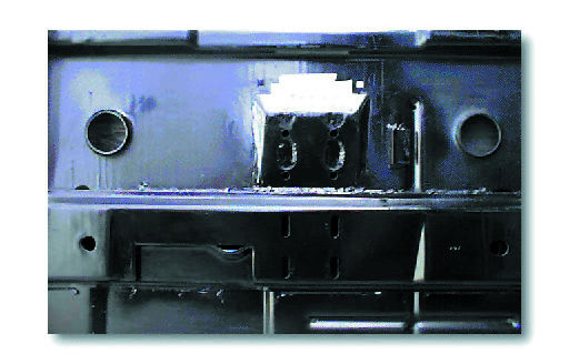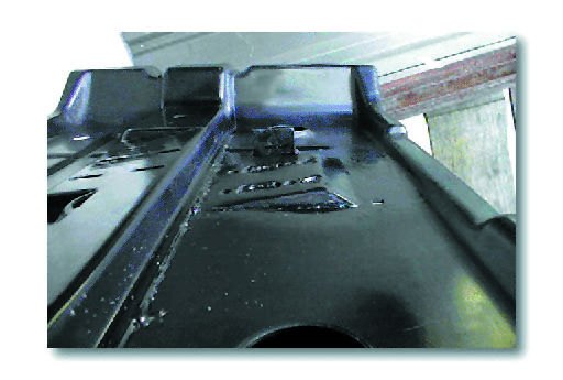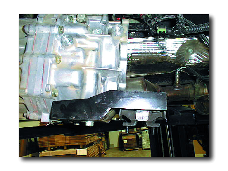 Once the bracket has been modified, the crossmember must be modified to fit the angle of the transmission and rubber support. Modified pan. The crossmember with the new rubber mounting area modified.