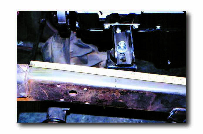 The correct engine location on a FJ40 is easily determined by measuring from the rear edge of the shock tower. The placement of the “L” bracket will vary because there are several drivetrain combinations. An ideal location for the “L” bracket is between 8” to 12” from the rear of the stock tower to the center of the “L” bracket. When placing the engine between the frame rails, it should be offset 1/2” to 1” (depending on which transmission is being used) toward the driver’s side to allow for proper front driveshaft clearance. When positioning the engine, the height of the “L” bracket should be either flush and/or up to 1/2” above the frame rail. This varies due to the lateral location of the “L” brackets. Ideally, the engine should have a 3 to 5 degree tilt towards the rear once the engine and transmission are installed. NOTE: These are only guidelines to assist you. Not all engine conversions are the same.