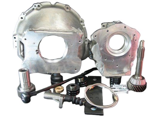 The overall assembly length is 24.750”. The 4.2 Jeep 6 cylinder engine can be easily adapted to the NV4500 using our adapter bellhousing. The internal release bearing will be eliminated and a new external slave cylinder gets mounted on the outside of our bellhousing.