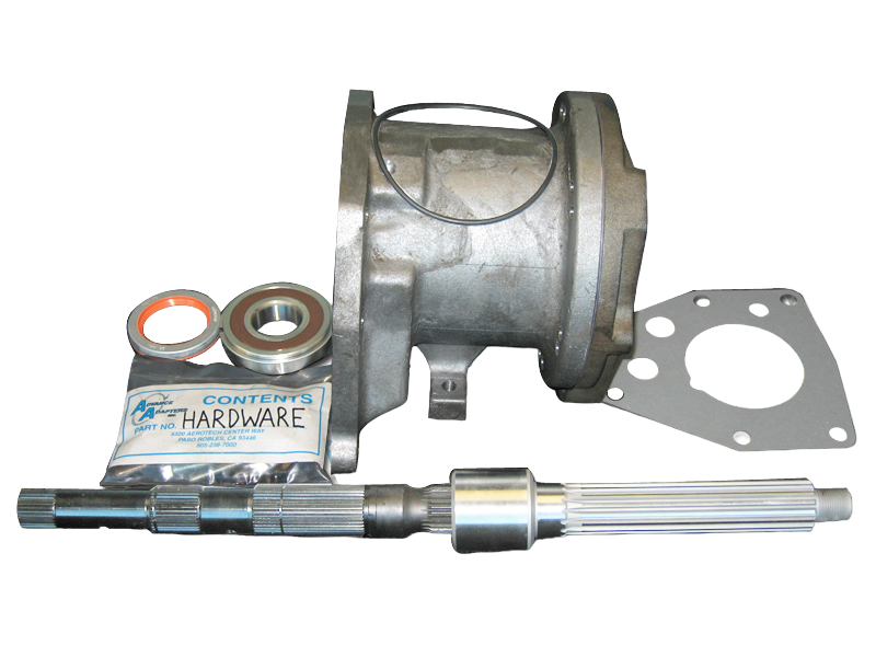 The Ford C4 adapter to the Land Cruiser 16 spline transfer case is 7.250” in length. And the overall length of the transmission and adapter is 24.250”. The adapter material is 356 T6 heat treated aluminum alloy. The adapter kit includes an adapter housing, 16 spline spud shaft, new C4 output shaft, vent, seal, o-ring, sealed bearing, gaskets, fastening hardware, and adapter instructions.
