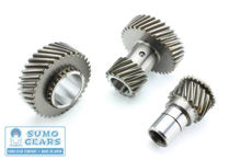 We now offer three different sets of Suzuki Samurai gears. P/N 48-4160 is a 4.16:1 low range with a 12% high gear reduction. P/N 48-4900 is a 4.90:1 low range with a 16% high gear reduction. P/N 48-6400 is a 6.40:1 low range with a 17% high gear reduction. See the PDF instructions for case modifications and gear installations.