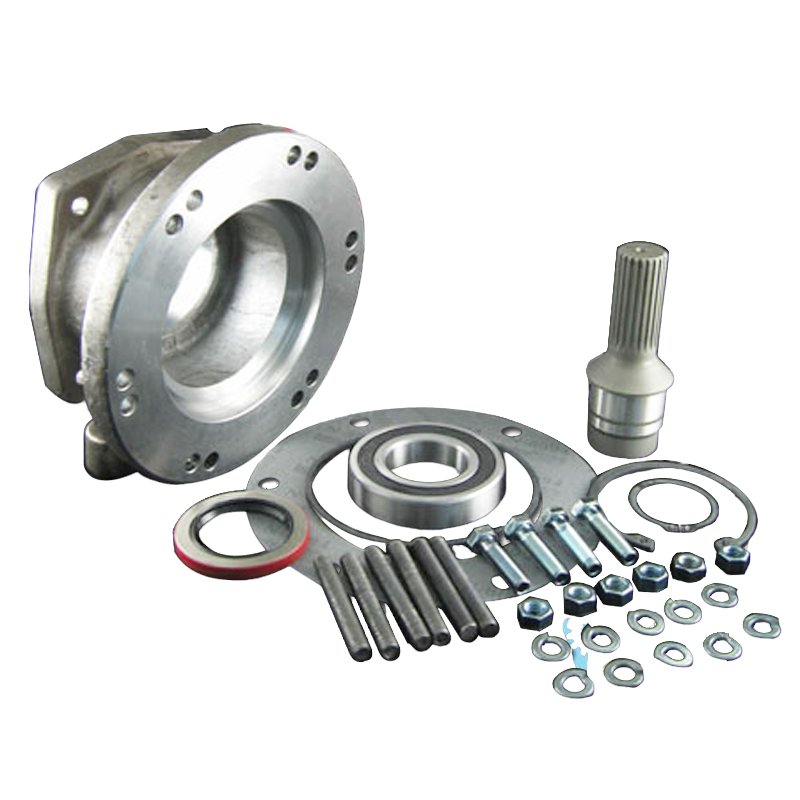 Our Advance Adapter 50-6304 will allow you to adapt a GM TH350 3 speed automatic transmission to the Jeep Dana 300 transfer. The adapter housing is 3.625" in length and is manufactured from 356-T6 heat treated aluminum alloy. We also supply a mounting provision on the bottom of the housing to bolt-on our heavy duty transmission mount (716021). The adapter kit includes an adapter housing, 27 x 23 spline spud shaft, bearing, snap rings, gasket, o-ring, fastening hardware and adapter instructions.
