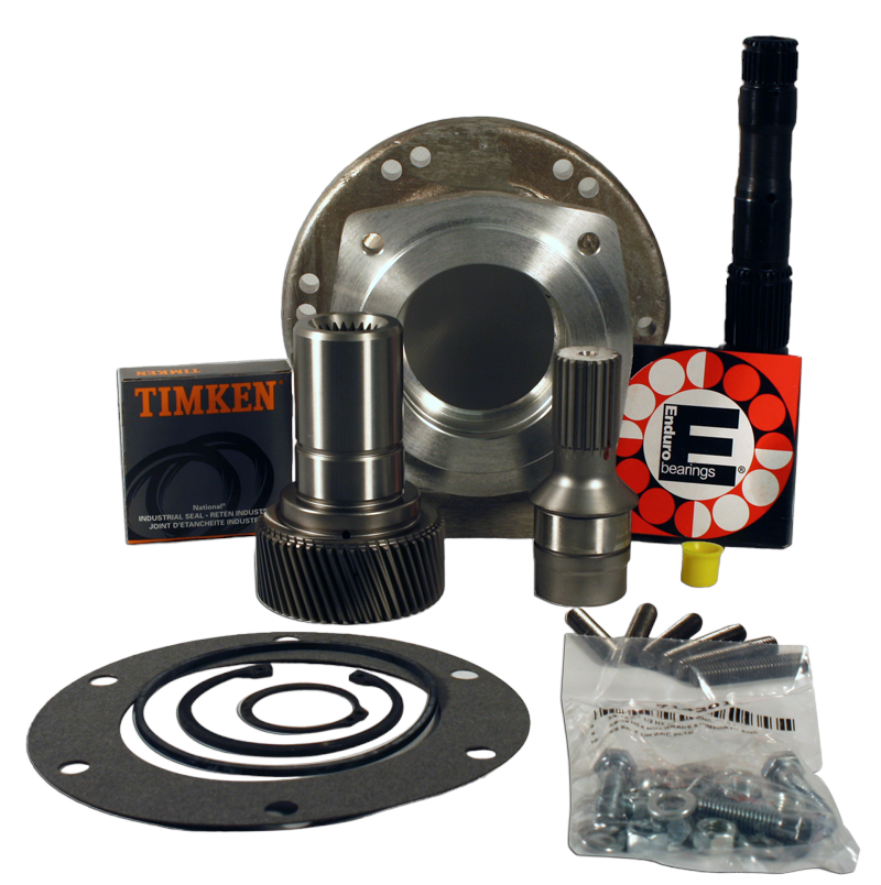 Note: The 4WD TH350 stock output shafts are getting hard to come by, which has increased their price. Unfortunately, we have had to adjust the kit pricing. Check with your local transmission shop to see if they have a shaft in stock for less than $120.00. If so, you can order this kit minus the output shaft. P/N 50-6306A
