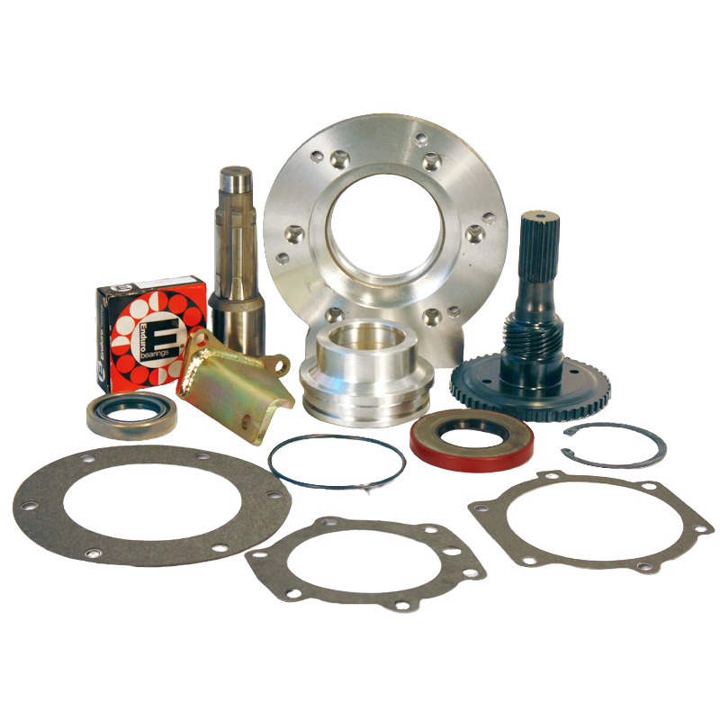 Our adapter kit for the GM TH400 3 speed automatic transmission to Bronco Dana 20. The adapter kit will include a new TH400 output shaft, adapter plate, snap ring, gaskets, seal, fastening hardware and adapter instructions.