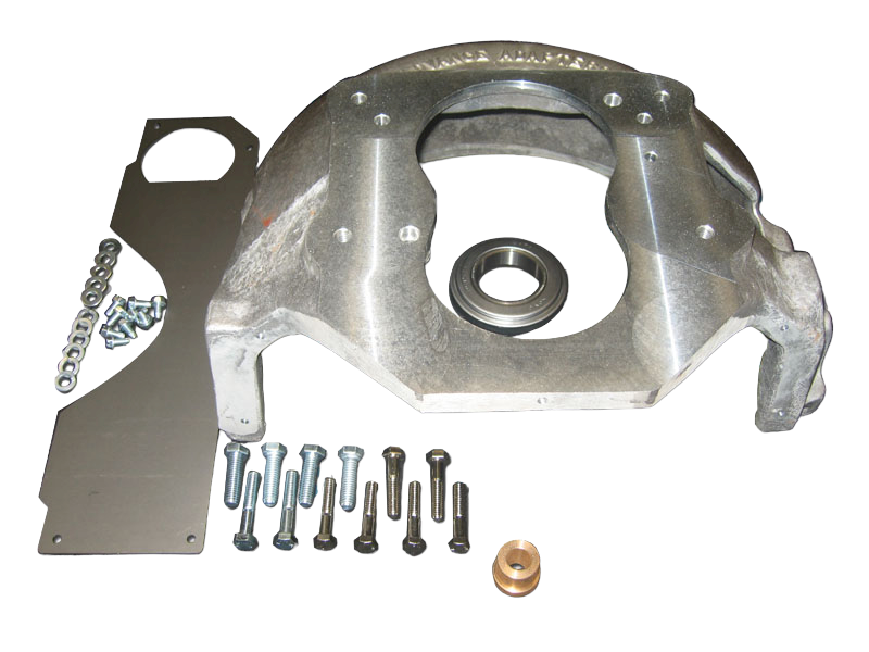 The Advance Adapters bell housing kit is used to adapt the GM V6 & V8 engines to the Toyota Landcruiser FJ40 / FJ55 4 speed manual transmission. The bellhousing is manufactured from strong 356 T-6 heat treated aluminum alloy. Included in the bell housing kit you will receive an aluminum bellhousing, universal dust cover, pilot bushing, clutch release bearing, fastening hardware and adapter instructions.