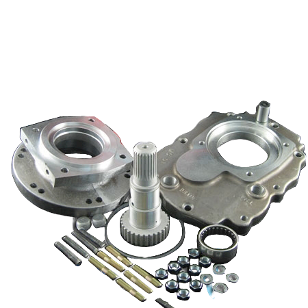 This kit will take a Toyota Truck gear reduction housing and couple it to either the Jeep Dana 300 or the Atlas transfer case. The adapter is 3.625” in length and adapter material is 356 T-6 heat treated aluminum alloy. The kit includes a adapter plate for the Toyota gear box, adapter housing to the 300 or Atlas, reduction housing output shaft, shift rail bushing, o-ring, needle bearings for cluster, drain plug, special key stock, fastening hardware and adapter instructions.
