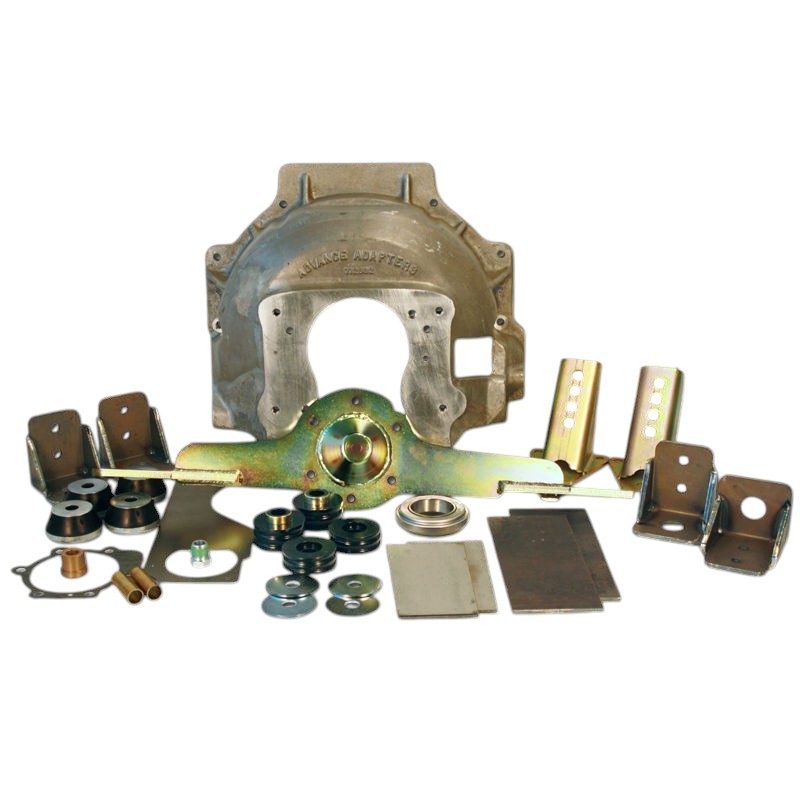 • Includes: Bellhousing kit, LS motor mounts, t ransfer case rear crossmember kit, LS c onversion flywheel, c lutch p late and d isc, r elease bearing, w ater temp bushing and u pper radiator hose temp sensor kit.